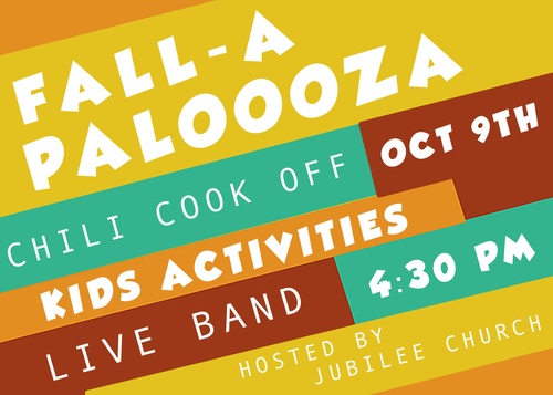 - All competitors bring in their chili the evening of Fallapalooza. All chili's are set out on multiple tables separated by spiciness. Judges will be in the back area where they will have a bowl of each chili to try out. After judging is finished, Fallapalooza begins and everyone goes through the line and gets to sample the chili! We will also have other Fall food & side dishes available!